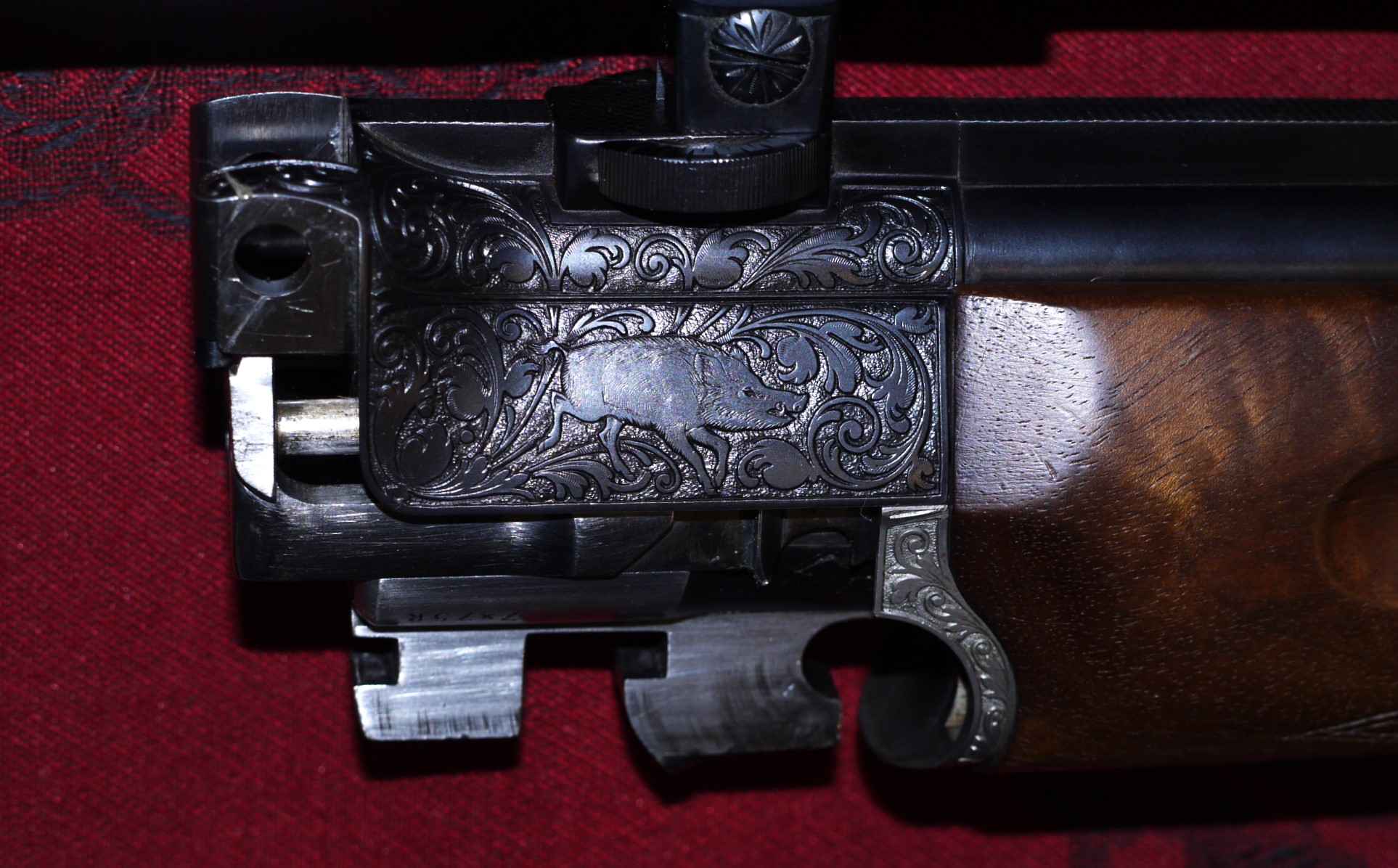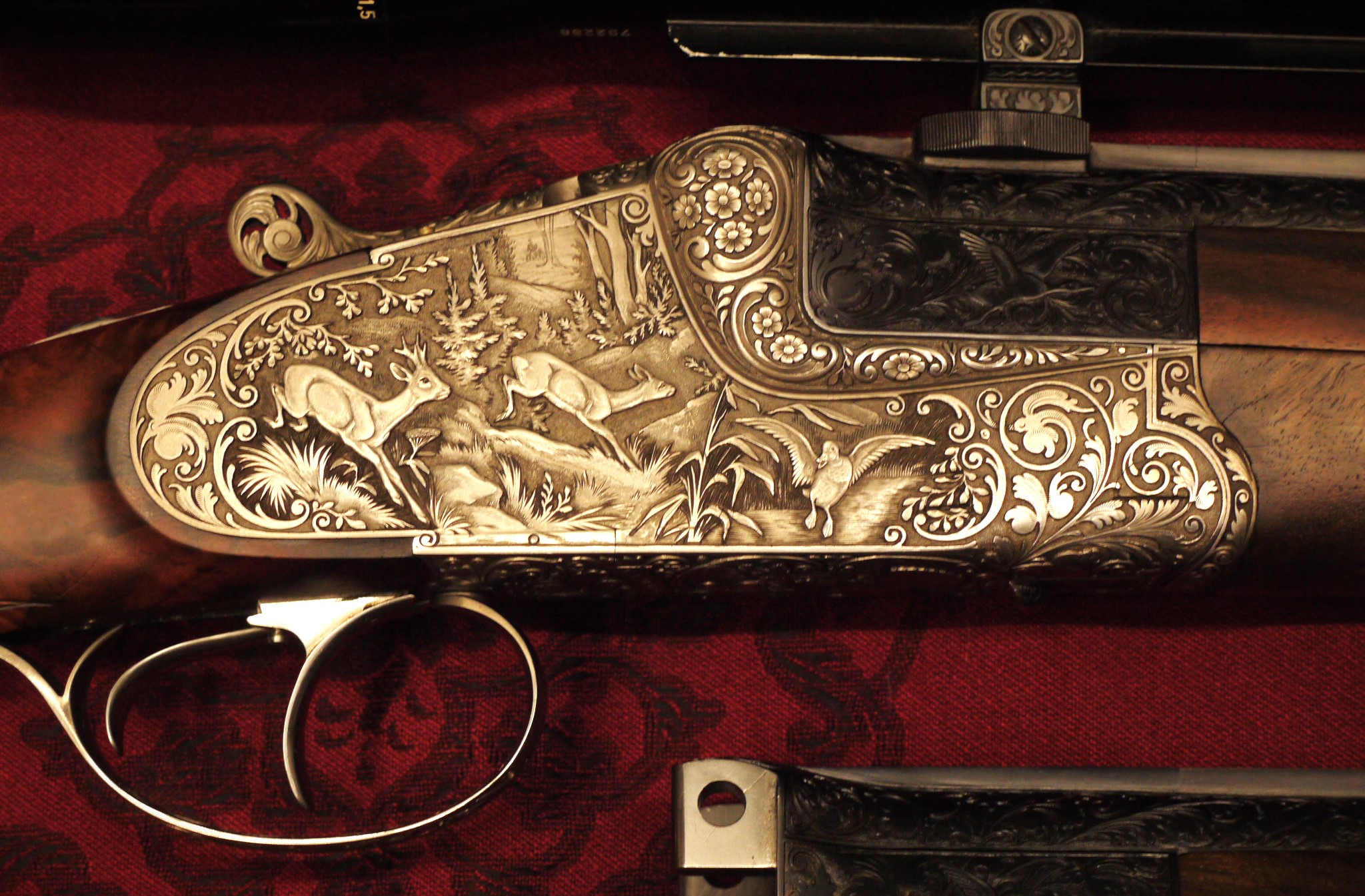 Sehr schöne, aufwändige Ziselierung mit ges. 13 Tierstücken, durchbrochenem Abzugsbügel und altdeutschem Lauf.