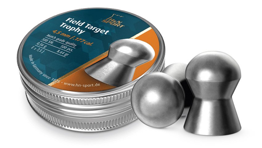 Mit einem Gewicht von 0,56 g handelt es sich bei der Luftgewehrkugel Field Target Trophy 4,5mm um eine mittelschwere, hochpräzise Wettkampf- und Jagdkugel mit flacher Flugbahn für mittlere Distanzen. Außergewöhnliches aerodynamisches Design für hohe Durchschlagskraft und Eindringtiefe. Engste Schussgruppen. Geringste Verbleiung und gleichmäßige Schussbilder durch spezielle Legierung. Erhältliche Kopfmaße: 4,50–4,52. Glatt.